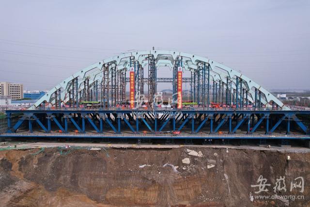 3月27日上午10點多,新安晚報、安徽網、大皖新聞記者在引江濟淮繁華大道橋工程現場看到,主橋拱肋經過吊裝、固定、焊接等流程后,完成了合龍段的施工。