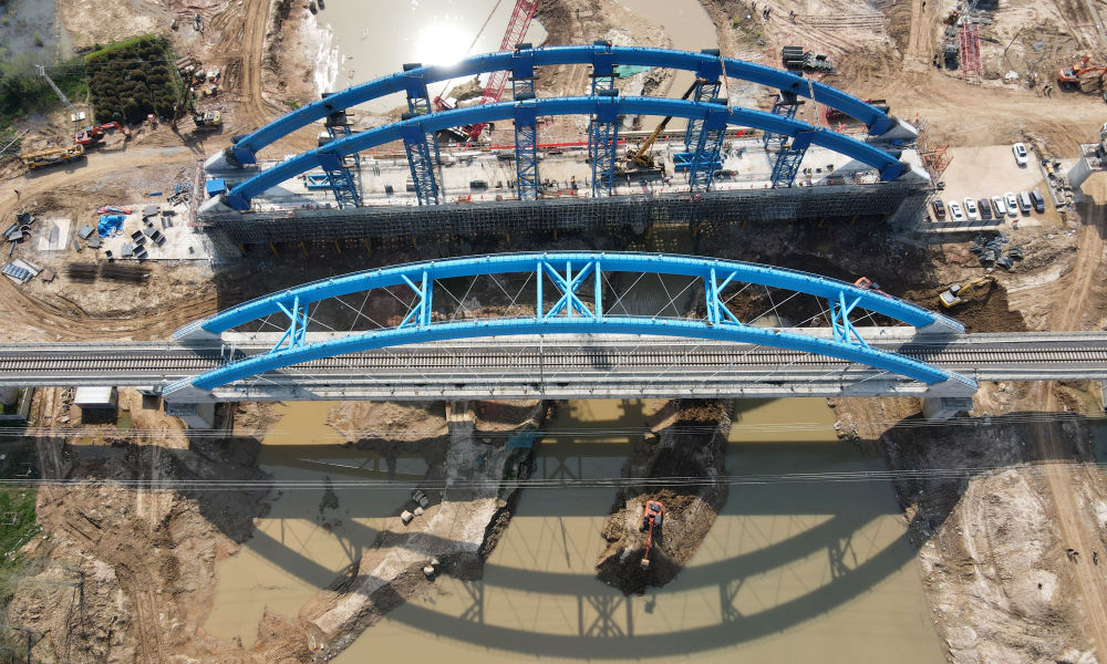 引江濟淮合九鐵路改建工程特大橋系桿拱合龍